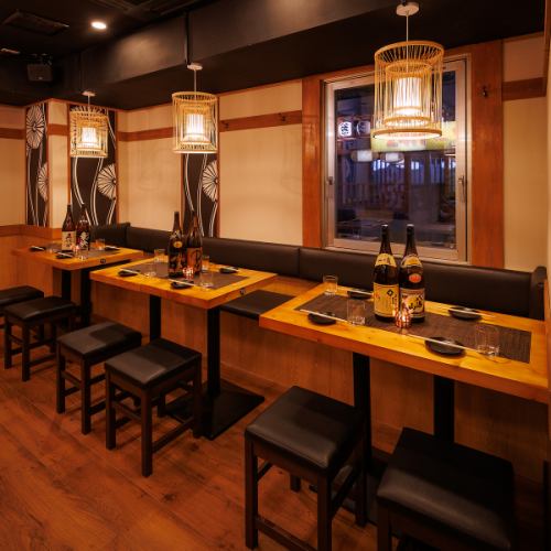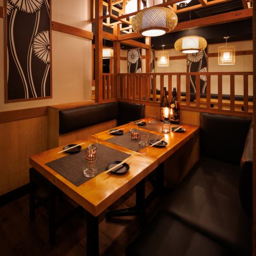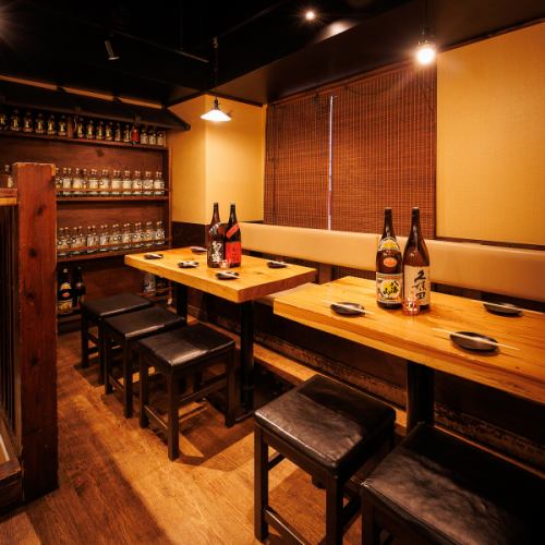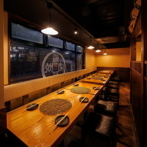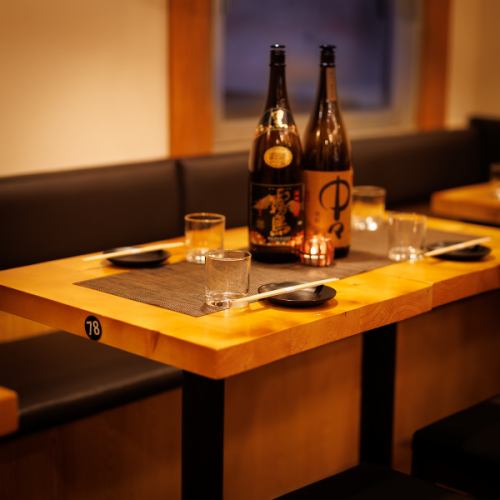 落ち着いた和の空間に設えられたテーブル席で、炭火焼のやきとんや鮮度にこだわった海鮮を堪能。飲み放題付きコースもご用意しております。和の風情を大切にしたテーブル席で逸品料理を楽しんでいただけます。気取らず過ごせる空間で、大切な方との語らいの時間をぜひご活用ください♪